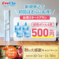 • 他社からフレシャスに乗り換えで、解約金を最大16,500円キャッシュバック!&初回の天然水1箱無料プレゼント!